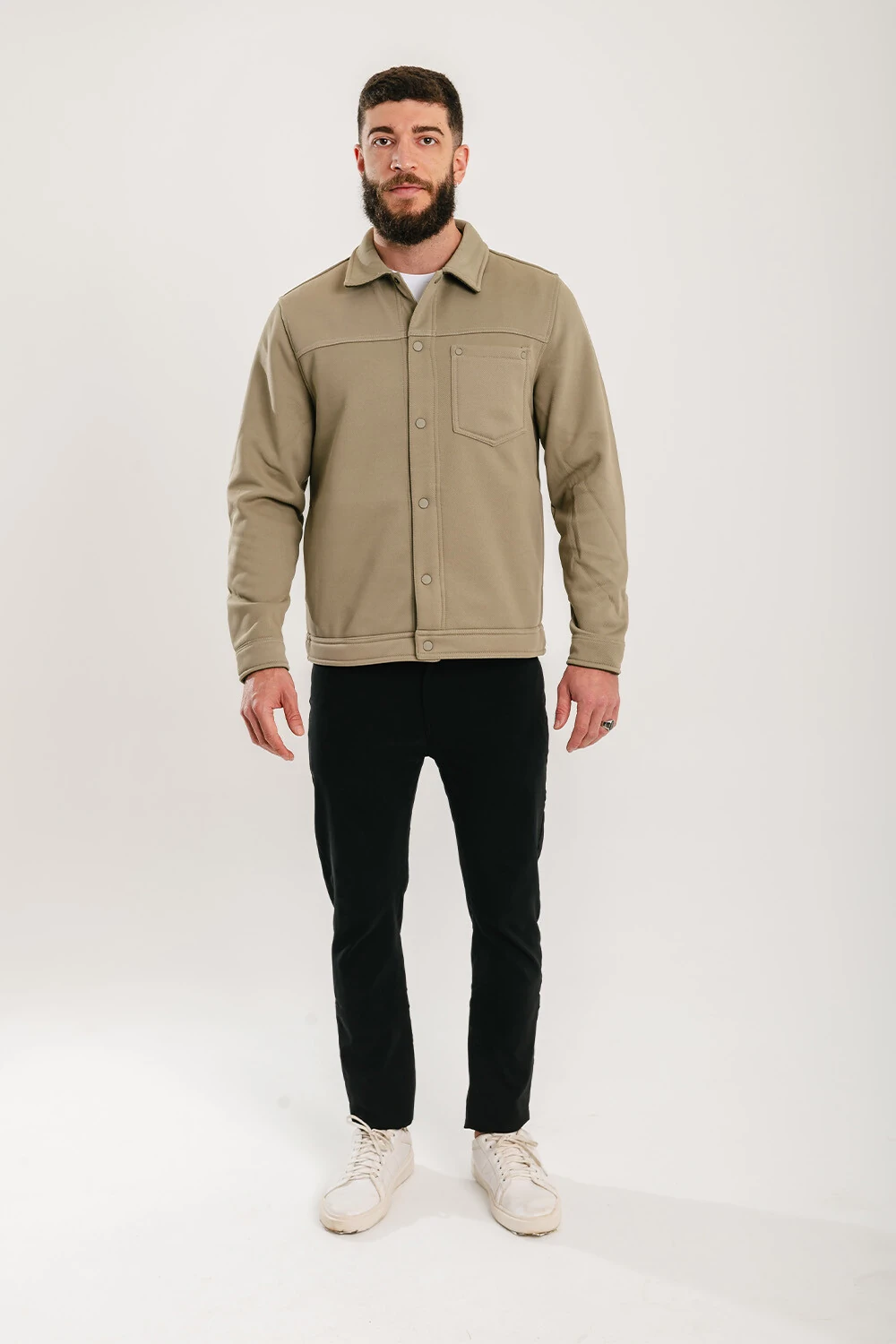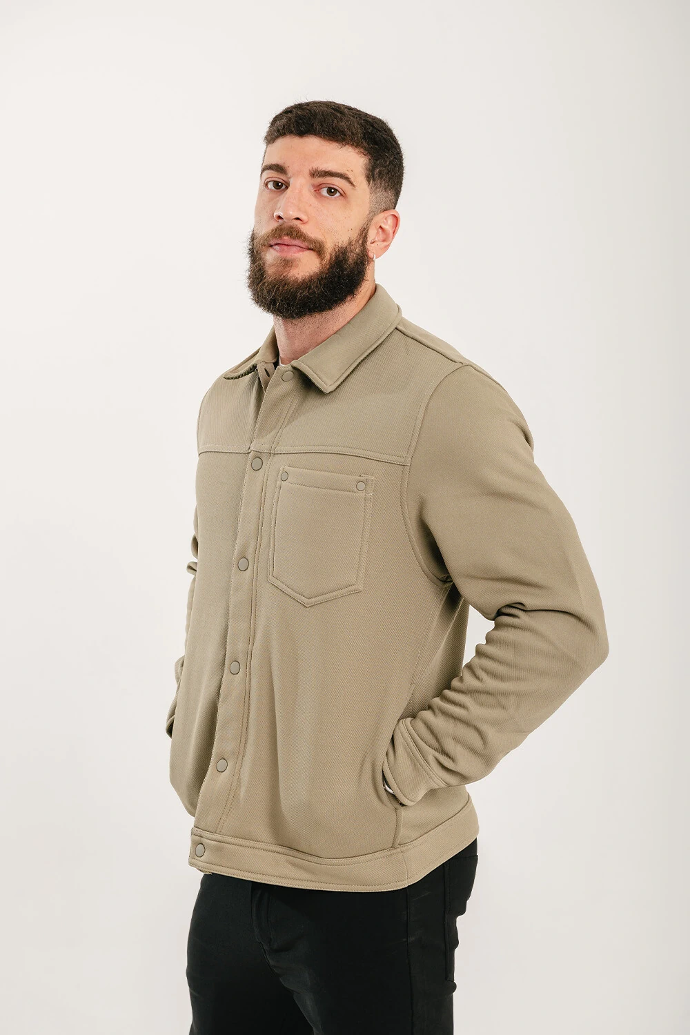 A Jaqueta Field é a terceira peça ideal para quem busca estilo e funcionalidade no dia a dia. Com corte reto, tecido encorpado e forro macio, ela garante presença e conforto em ambientes variados. Possui três bolsos funcionais: dois laterais e um frontal superior, amplo. É feita em 100% poliéster, com acabamento interno felpado para aquecimento leve e uso prolongado. É uma overshirt que funciona como terceira peça no dia a dia — para trabalho, viagem ou momentos casuais. Funcional sem parecer esportiva. Estruturada sem ser formal.